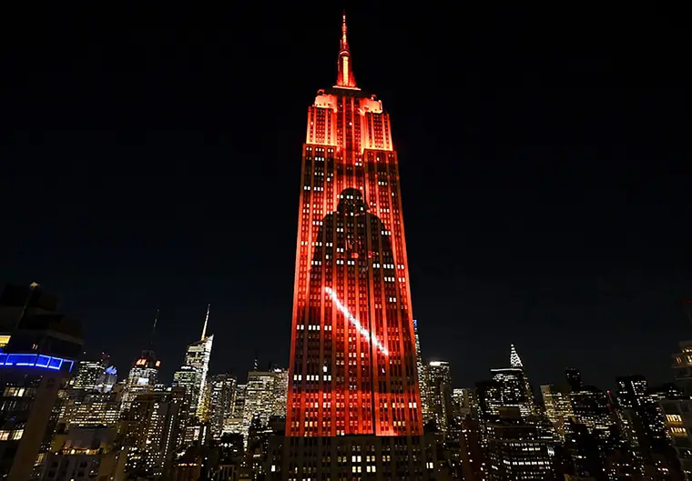 This week, as part of the new “Imperial March” campaign for revealing new Star Wars products, the skies of New York City were lit up with a Star Wars display to remember. Scenes from the Star Wars movies and TV shows were projected onto The Empire State Building for all to see.